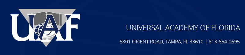 Universal Academy Of Florida Falcons. We are located across the street from the Islamic Society of Tampa. 6801 orient road tampa fl 33610.